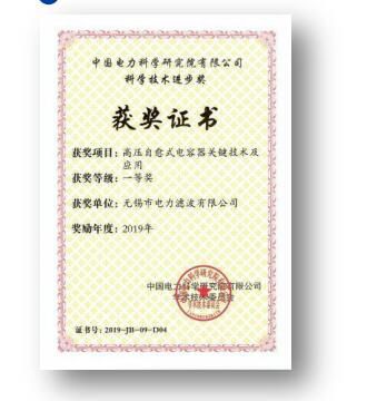 中國電工技術(shù)學會電力電容器委員單位  -   產(chǎn)品榮獲中國電科院2019年度科技進步一等獎